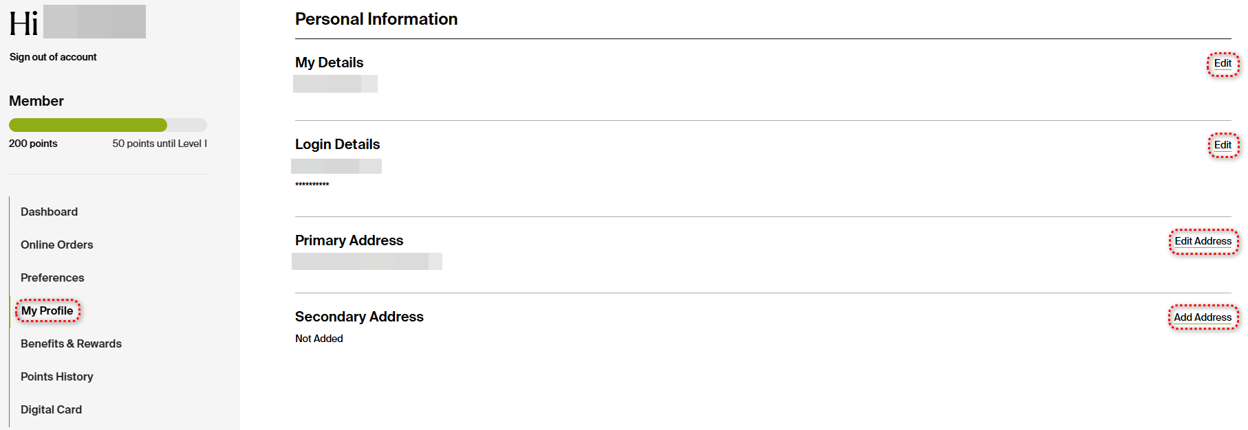 To update your details online you will need to log in to your account. Once logged in and on the account section, select 'My Profile' from the left hand menu to change your personal and contact information.